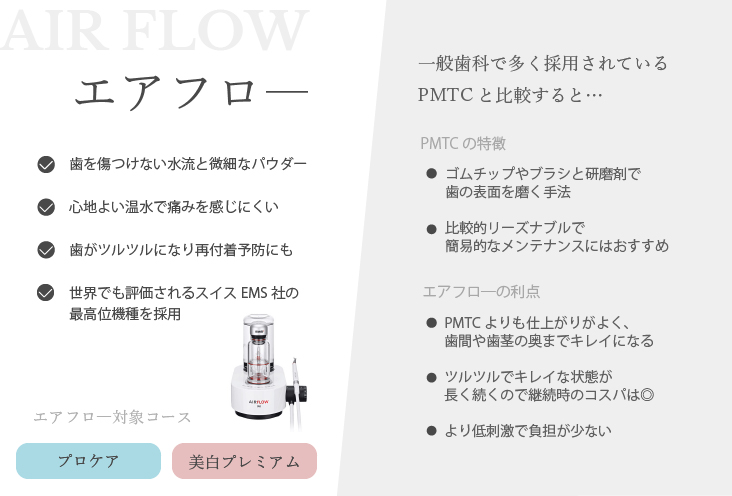 当院では世界でも高い評価を得ているスイスのEMS社の最高位機種のエアフローを採用しています。