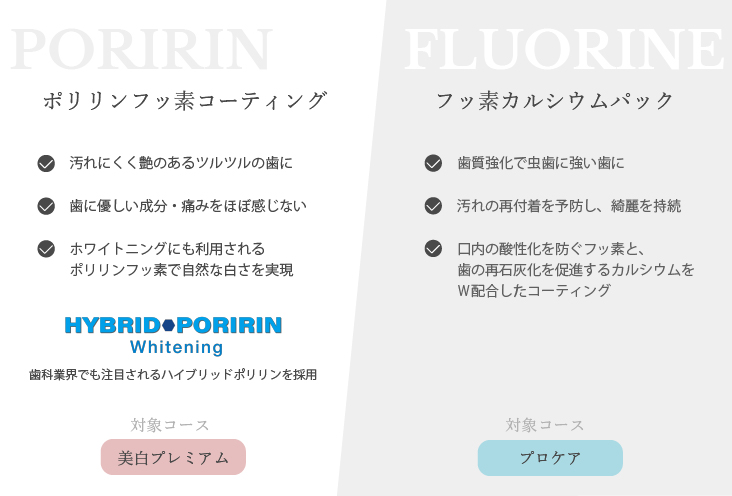 ホワイトニングにも利用されているポリリン酸を加えた、より汚れの再付着防止効果や歯を綺麗に維持する効果が高い「ポリリンフッ素コーティング」も当院ではおすすめしています。